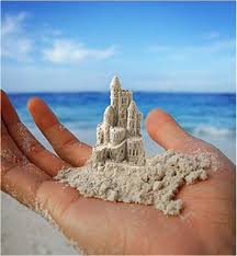 Construímos castelos com nossas próprias mãos e mesmo que eles desmoronem (às vezes acontece), reconstruímos e ficamos felizes. Aprendemos a importância de nos reerguer e seguir em frente. Experimentamos o gosto doce da vitória e do picolé. Nos deliciamos. Cavamos buracos fundos na areia. Ficamos alegres quando se enchem d'água. Que conquista quando construímos verdadeiras piscinas à beira do mar. Pulamos onda. Fugimos da água gelada. Vencemos o frio. Mergulhamos. Sentimos orgulho. Levamos caldos. Nos assustamos. Aprendemos a importância da humildade. Reconhecemos nossas próprias limitações. Mergulhamos de novo. Ficamos atentos as ondas maiores. Corremos. As ondas nos alcaçam. Corremos mais rápido. Chegamos ilesos na areia. Conquista. Felicidade. Deitamos na toalha quentinha e nos sentimos felizes da vida. O sol esquenta e aquece a alma. Alegria. Merecimento. As ondas vão e vem. Me lembro da minha avó querida que sempre comparava a vida ao mar. Às vezes está tudo calmo. Outras, aparecem marolas. De vez em quando, uma onda inesperada nos derruba. Precisamos ser fortes. Prendemos a respiração. Levantamos. Ficamos de pé. Nas épocas de ressaca é difícil enxergar o sol no céu. Mas ele sempre aparece e o mar se acalma. Tudo ao seu tempo. Refletimos. Observamos. Mergulhamos novamente e agradecemos a Deus por tudo. Colocamos nossa vida na mão de Deus. Abandonamos. Pedimos fé. Agradecemos de novo. A cada dia basta o seu cuidado.